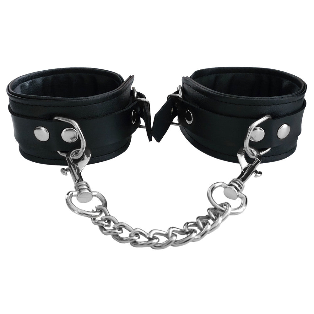 Esposas de tobillo veganas Fetish Play: Estas esposas de tobillo de cuero sintético son suaves y cómodas, lo que permite sujetarlas durante largos periodos. La cadena extraíble permite colocarlas en varias posiciones y añadir accesorios a la anilla en D.