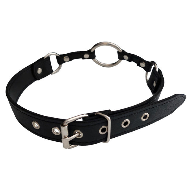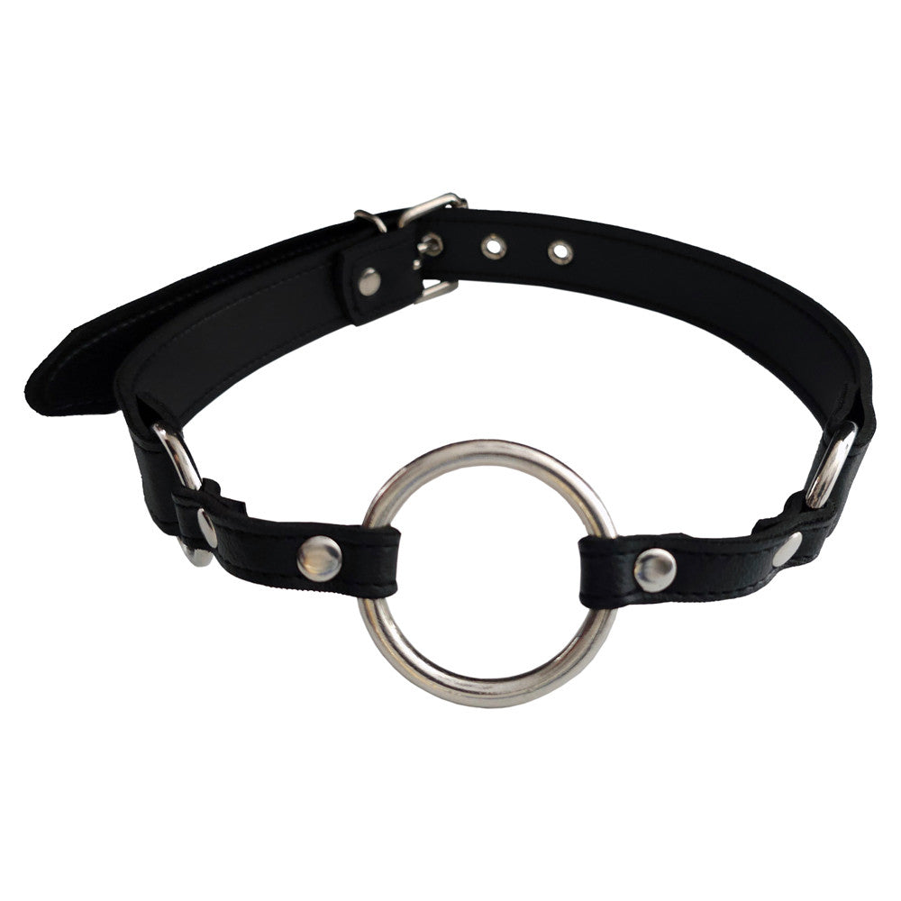 Mordaza vegana con anilla para fetiches. Esta mordaza de cuero sintético con anilla mantendrá la boca de tu sumiso abierta por cualquier razón. La anilla se coloca detrás de los dientes, dejando la mandíbula y los labios completamente abiertos, dejando al usuario a tu completa merced.