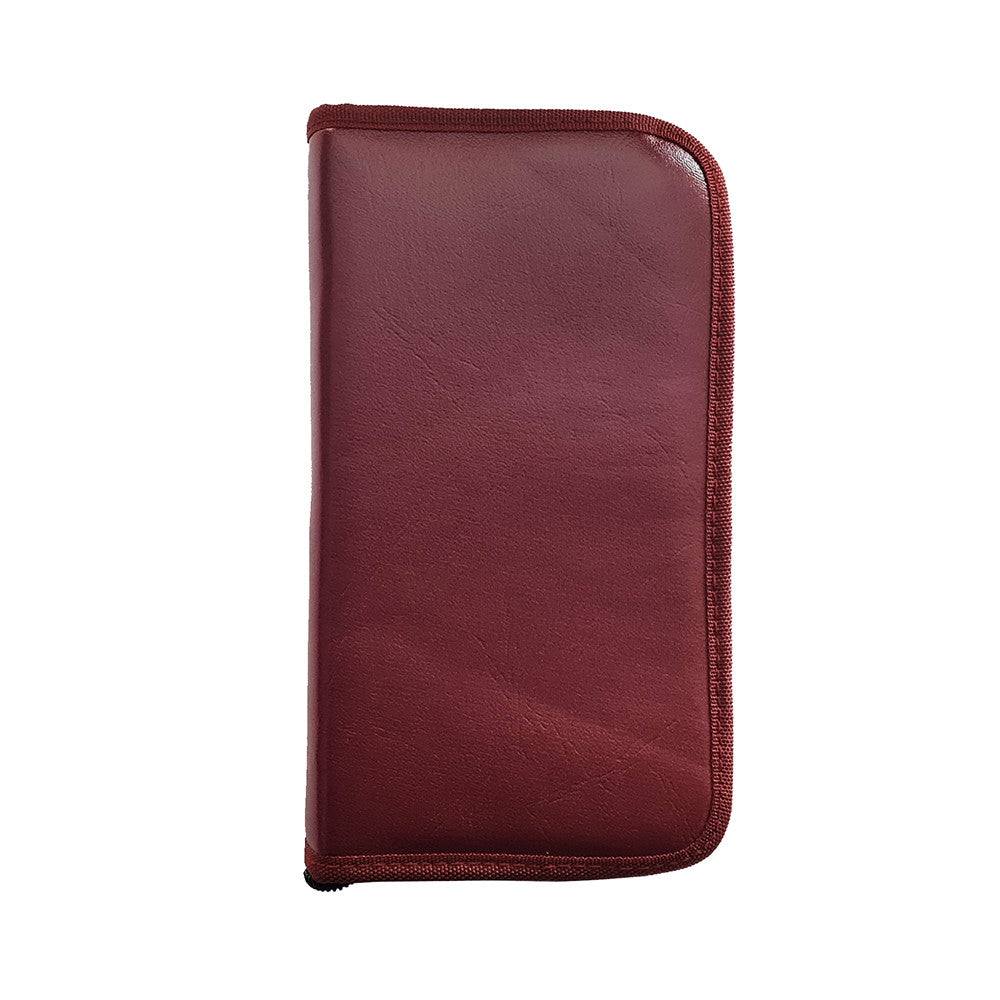 Comes in a nice soft zipper pouch with an elastic holders for each pinwheel wheel.