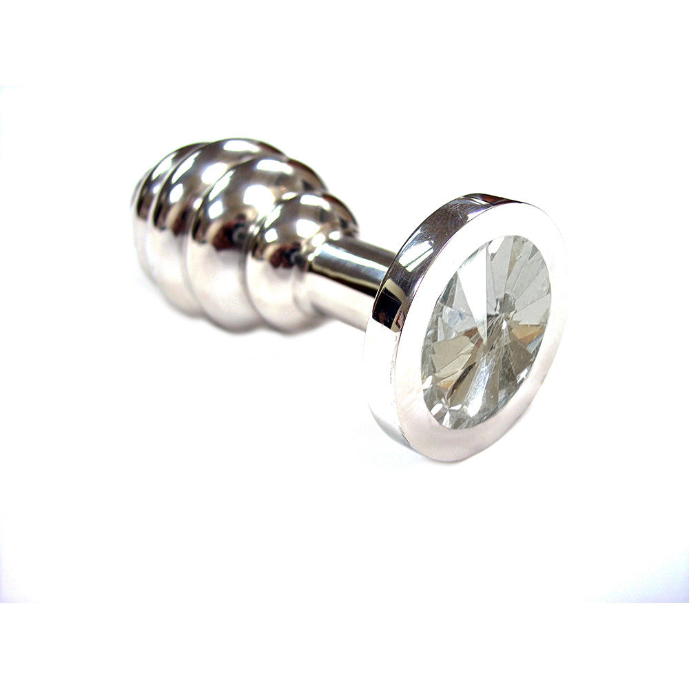 Large Stainless Steel Threaded Butt Plug With Coloured Crystals In Clamshell